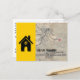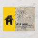 Two parts in front of this New Home Postcard: one with yellow rectangular shape in left with a little black house and tiny envelope, second part of the postcard: map as background to customize. On the map is placed "We've moved" with shadow (no customizable). All infos on the back of the postcard are customizable. You can easily change map and text colour, font, size and position by clicking the customize button. Available with white small house.