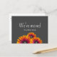 We've moved moving announcement postcard, with a boho daisies design on a grey background. With customizable lettering, you add your own information. Great for letting loved know about your new home.
