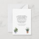 This moving announcement note card is modern and features quirky, boho plants, a couch, and a cat relaxing on it. Check out the rug and the wall art and vintage overhead lamps. Something your recipients would smile about