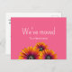 We've Moved Botanical Daisies Whimsical Pink Announcement Postcard
