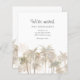 Celebrate your new home while letting them know of your plans and new address with this cute budget modern watercolor palm tree moving announcement card template that you can easily customize.