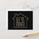 Share the joyful news of your new home with a simply elegant black and gold moving announcement postcard. All text on front and back can be customized or deleted. Change "We've Moved" to "I've Moved" or other text if desired. Design features a minimalist house outline on front and simple modern typography message on back. This change of address card is a stylish way to introduce friends and family to your new home. The silhouette of a house makes it especially perfect for an architect, contractor, interior designer, real estate agent, home decorator, or anyone interested in the building trades, house design, or architecture. Please note that gold on card is non-metallic printed colour, not foil.