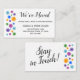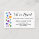 Keep your friends and family up to date with your new address using these bold, colourful enclosure cards. Versatile typography highlights read "We've Moved" on the front and "Stay in Touch!" on the back, using a modern, casual font. Opposite sides of this card, front and back, have been embellished with an array of colourful, cheerful sunshine patterns. The palette includes two shades of blue, teal, purple, rose, Kelly green and tangerine. The rest of the card was left a clean, bright white, with plenty of room for your personal details. Use the template fields to add all your unique details and personalize this design for your own use. All text is rendered in black, which you're welcome to change as you see fit; the fonts can also be changed if you wish to edit the design. // Designed by Melody Watson for Paper Muserie.