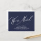 Modern moving announcement featuring a stylish calligraphy script set on a navy blue background. Click on customize to change the background colour!