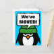 We've moved moving postcards with funny penguin. I've moved moving cards for new address. Personalized speech bubble moving postcards for new home. Custom move text like We have moved! Add your new address on the back. Modern cute animal bird cards for new house or business location. Customizable message.