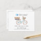 Moving home change of address announcement card featuring a watercolor feminine bicycle with a flower basket and luggages on the rack. Perfect to let friends and family know about your new address by changing the placeholder information on this card