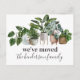 Modern moving announcement postcards featuring watercolor botanical foliage houseplants, and your new address details on the reverse.