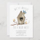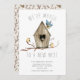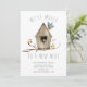 Rustic new nest moving announcement card and a wood birdhouse with birds. Flip our new address card over to view a coordinating leaf back for an extra special touch.