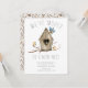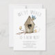Rustic new nest moving announcement card and a wood birdhouse with birds. Flip our new address card over to view a coordinating leaf back for an extra special touch.