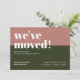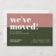 Let your family and friends know that you've moved to a new city with our modern bold typography moving announcement card. Design features a bold minimal design layout with "we've moved!" displayed in modern bold typography. The modern pink & green two-tone colours create a modern bold look.