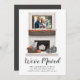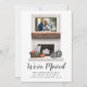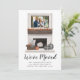 Announce your move and new address to friends and family with our unique Rustic Fall Farmhouse Fireplace moving announcement! The fall moving announcement features your horizontal family photo in a dark wooden frame mounted on an off-white brick fireplace. The fireplace mantle is decorated with a garland of watercolor autumn leaves and white pumpkins with white candles, black and white buffalo plaid pumpkins, and other fall decor located on the hearth. Personalize the family photo moving announcement with your name, address, and other text. The back provides additional space for text and images. The moving announcement card is perfect for fall and Thanksgiving.