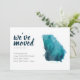Our New Home moving announcement has a design of blues and green watercolor in the shape of a Georgia state map. On the back of the design is a smaller version of this Florida state shape. All the text is modern calligraphy and can be easily personalized.