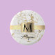 Wh & Gold Marble Gold Box, DIY Black Name Monogram 1 Inch Round Button