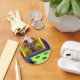 The popular arcade or carnival game, Whac A Mole is brightly colored with bold, neon reds, greens, yellows and blues. A classic game for all children - regardless of age. This fun, classic game was invented in Japan in the 70's. This keychain is fully customizable.