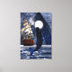 Whale and sails on a full moon night canvas print
