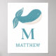 Whale animal. Nursery Baby Boy nautical monogram Poster