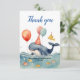 Add a touch of cuteness to your sea lover's birthday celebration with our under-the-sea-themed boys' birthday party thank-you cards. Order today for a sweet and memorable keepsake! An adorable baby whale swimming in the sea adorned with a birthday hat and balloons. There is plenty of room to personalize with that birthday boy's name and special date! Mix and match with our other fun party products from My Baby Boutique!