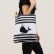 Whale on Black and White Striped Tote Bag