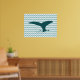 A graphic design of a whale tail on a chevron sea. Good to adorn your home or office walls. It will fit fine in a beach house decoration.