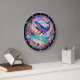 A vibrant wall clock design featuring a whale, rainbow, ocean waves, and tropical floral decoration, blending art with functional decor.