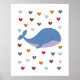 Whale with Colourful Hearts Nursery Room Poster