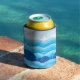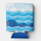 Sweet seaside can cooler with a trio of whales emerging from the ocean waves.
