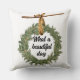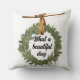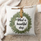 A pretty fir branch wreath and the words: What a beautiful day. Click personalize to change the words to other short words, or buy it as is.