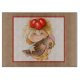 A Cute Beige Tempered Glass Cutting Board With A Boy Holding A Chicken With Eggs In His Hair