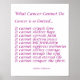 Text of 'What Cancer Cannot Do" Poem What Cancer Cannot Do Cancer is so limited... It cannot cripple love It cannot shatter hope It cannot corrode faith It cannot destroy peace It cannot kill friendship(s) It cannot suppress memories It cannot silence courage It cannot invade the soul It cannot steal eternal life It cannot conquer the spirit. -Author Unknown This poster print makes an inspirational cancer gift!
