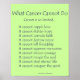 Text of 'What Cancer Cannot Do" Poem What Cancer Cannot Do Cancer is so limited... It cannot cripple love It cannot shatter hope It cannot corrode faith It cannot destroy peace It cannot kill friendship(s) It cannot suppress memories It cannot silence courage It cannot invade the soul It cannot steal eternal life It cannot conquer the spirit. -Author Unknown This poster print makes an inspirational cancer gift!