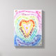 The poem of "What Cancer Cannot Do" radiate out in rainbow colours from concentric hearts. The painting was rendered in watercolor. Customize this cancer art gift into your own canvas painting size and background colour. This makes great inspirational cancer gifts for women, men, and children! Buy it for those coping with cancer as well as cancer survivors. Proceeds from the sale benefit DonnaBellas Angels which is a 501(c)3 non-profit organization whose mission is to provide inspirational art to the public.