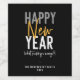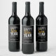 Happy New Year (what could go wrong?), new year's humour bottle labels. Features modern chic typography in shades of grey, white and yellow with solid coordinating classic black colour background. Template text line for your name or message at bottom of label.