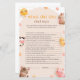 This adorable baby shower Game What Did the Dad Say features a charming farm animal theme with cute illustrations of a cow, bunny, chick, horse, and pig, surrounded by cheerful flowers and a smiling sun. The soft pastel colours and whimsical design create a warm and inviting atmosphere. Visit our shop to view our entire Brown Cute Farm Animal collection.