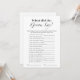 Introducing "What Did the Groom Say?" – a chic and minimalist black and white bridal shower game card designed by CaMiDesigns. This fun and engaging game is perfect for adding a touch of excitement to your bridal shower, allowing guests to test their knowledge of the groom's thoughts and experiences. With its elegant design, it seamlessly complements any bridal shower theme. For any assistance with orders, shipping, product information, and more, please contact Zazzle Customer Care directly.