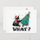 WHAT Funny Black Cat Santa Pushing Christmas Tree Holiday Card