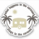 Funny caravan and motorhome sticker of a caravan and palm trees graphic, with the phrase WHAT HAPPENS IN THE CARAVAN STAYS IN THE CARAVAN