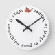 Round Clock with a plain white background and a monarch butterfly with the saying What if Something Good is about to happen. Great gift to encourage a friend.