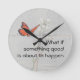 Round Clock with a floral background and a monarch butterfly with the saying What if Something Good is about to happen. Great gift to encourage a friend.