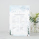 What Is in Your Purse Baby Shower Game in a winter theme with pine trees and snowflakes?