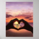 A husband looks through the heart-shaped hands at his young family on the beach in beautiful sunset. A sentiment of tenderness fills this digital painting about love and family. Choose your size, paper stock, mat, and frame to create a special art for your decor or purchase the print only and enjoy it as a poster. ©Aruarian Dancer / MiyabiLine