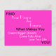 The "What Makes You" Design by Illustrator April McCallum Features Inspirational Text in Black and White on a Hot Pink Postcard. Text Reads: "Find Your Passion, Joy, Purpose... What Makes You Dream Bigger Dreams, Come Fully Alive, Love Your Life... YOU!"