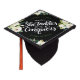 Super cute cap topper with Original calligraphy by Joy Kelley on a black background adorned with watercolor flowers. Personalize with your name and class year.
