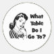 Here is a fun retro graphic design that features a woman pondering "What Table Do I Go To?. This design works well for Bunco groups, waiters, waitresses, restaurants, bars or just for fun.