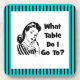 Here is a fun retro graphic design that features a woman pondering "What Table Do I Go To?. This design works well for Bunco groups, waiters, waitresses, restaurants, bars or just for fun.
