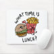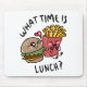 What time is lunch? Funny hamburger and french fries in love. A perfect match for kids as well as for adults.