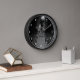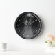 The size of the clock is dramatic and the abstract alcohol ink design is soothing and intricate at the same time.  I chose the black frame that adds pop to the blue and gold design.  The gold printing would be better in a slightly darker or larger font.  I love it and I’m looking for just the right place in ny new apartment.  I would recommend this clock for a personal gift or a present.  I feel that the quality is excellent for the money!  I’m a bit of a clock nut so I’m pretty particular about my purchases.  The clock is larger in diameter than many if the clocks I have, so it stands out very well. I think a slightly darker printing color and a moderately larger size would best suit a professional decor or add more impact in a work place item.