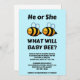 Beautifully designed 'What Will Baby Bee?' gender reveal party invitation. This invitation sets the tone for a memorable gender reveal where loved ones and friends gather to unveil the exciting news of your baby's gender. Feel free to customize/personalize this invitation to your liking. Enjoy your gender reveal!
