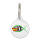A parody design of the Ichthys (Jesus Fish). The design of the Ichthys fish, mashed up with the Joker Fish from a comic book cartoon. WWJD in black text is inside the fishing, asking, "What Would Joker Do?"