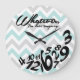 Teal Blue and Grey Chevron pattern. Whatever, I'm late anyway wall clock. Funny Whatever clock.