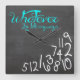 Whatever, I'm late anyways. Funny like a boss, wall clock. Mint blue and white on chalkboard background..